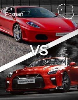 Jazda porównawcza na torze Głównym w Poznaniu to świetna okazja, by przetestować możliwości Ferrari F430 i Nissana GTR na własnej skórze. Osoba obdarowana bierze udział w całodniowym evencie motoryzacyjnym na najdłuższym torze wyścigowym w Polsce! Posiadacz vouchera realizuje przejazd za kierownicą każdego z aut, a podczas realizacji miejsce pasażera zajmuje doświadczony instruktor. Voucher upoważnia do pozostania na terenie obiektu po zakończonej przejażdżce. Można zobaczyć inne dostępne samochody światowych marek i kibicować pozostałym kierowcom.