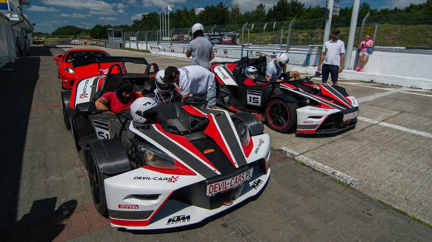 - Po przyjeździe na tor należy się zgłosić do biura obsługi ze swoim voucherem i dokonać rejestracji. Następnie czekamy w pobliżu aut na swoją kolej.